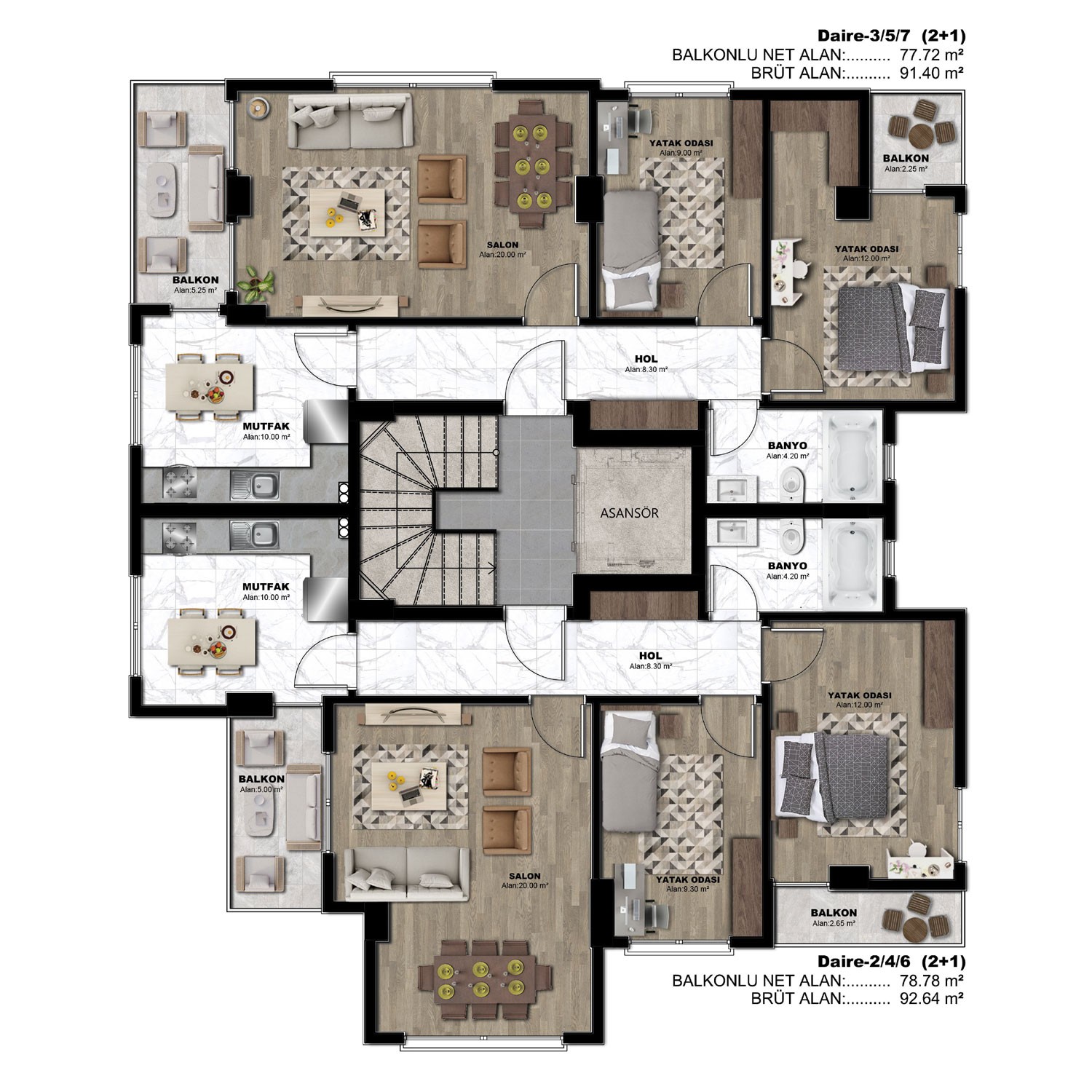 Aşağıda yer alan kat planları aracılığıyla projemizdeki farklı daire tiplerini detaylıca inceleyebilir, size en uygun alanı seçmek için mekanların yerleşimini ve genişliğini kolayca görselleştirebilirsiniz.